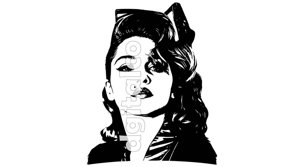 Whether you're creating home décor, temporary tattoos, wall art, or decals, this versatile design can be applied to a wide range of materials like wood, glass, and fabric. Bring Madonna's timeless energy into your designs with this retro vector portrait and make every project stand out!